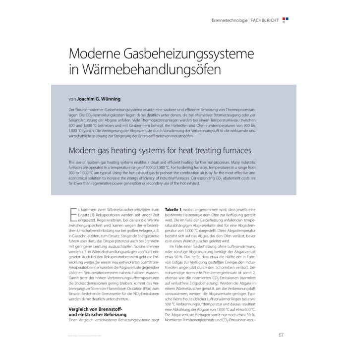 | Titel | Moderne Gasbeheizungssysteme in Wärmebehandlungsöfen |