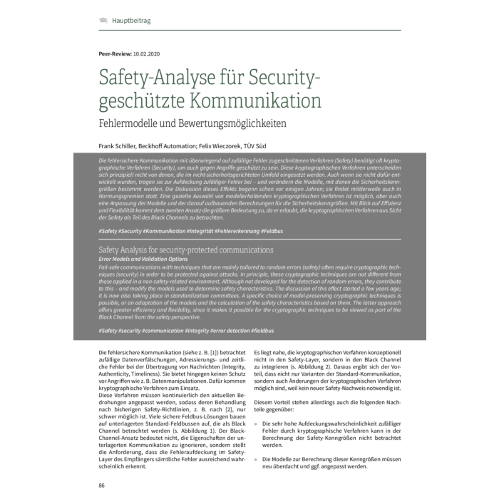 | Autoren | Frank Schiller, Beckhoff Automation; Felix Wieczorek, TÜV Süd |