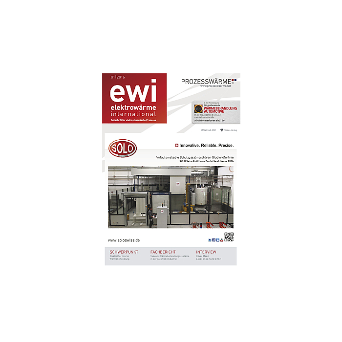 Die Fachzeitschrift für die Bereiche der elektrothermischen Prozesstechnik und des elektrisch beheizten Industrieofenbaus.