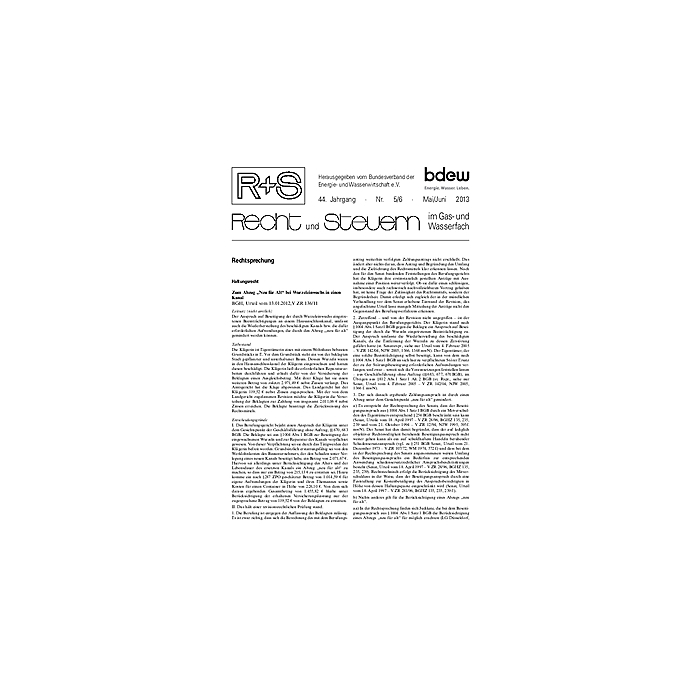 R + S - Recht und Steuern im Gas- und Wasserfach - Ausgabe 05-06 2013