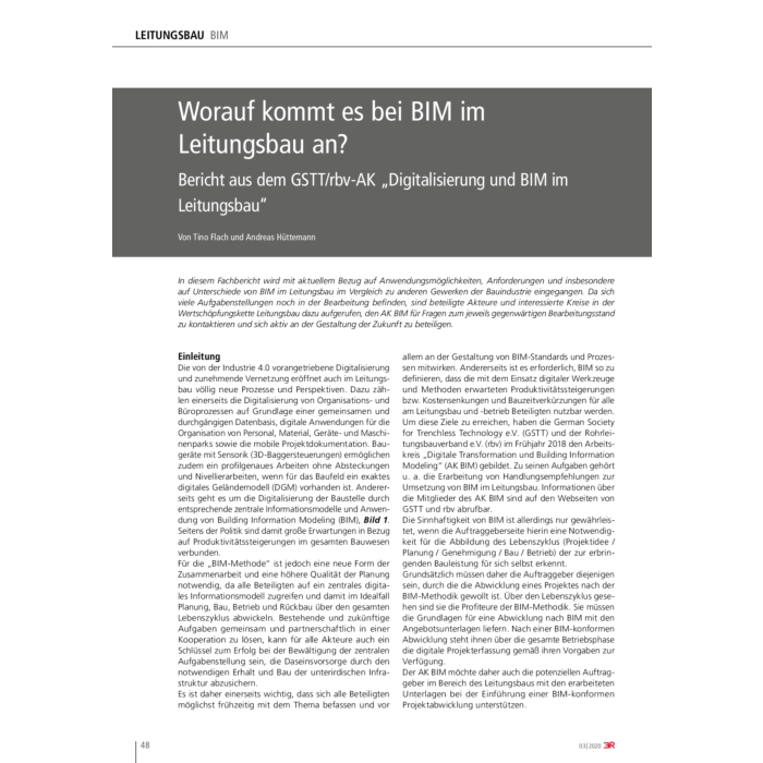 | Untertitel | Bericht aus dem GSTT/rbv-AK „Digitalisierung und BIM im Leitungsbau“ |